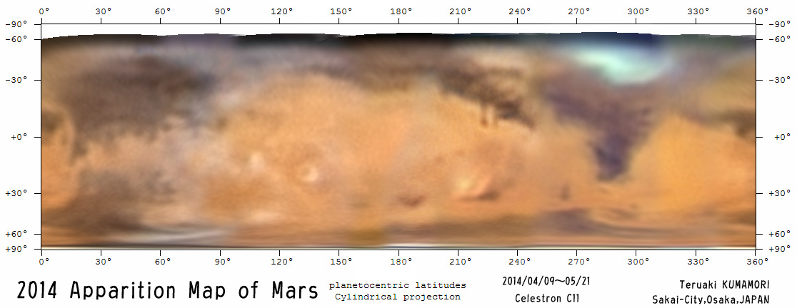 図5は、熊森氏が作成した今シーズンの火星面展開図です。展開図は、なるべく火星面に