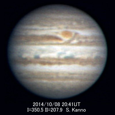 | BA前方に濃いSTBnが伸びている。大赤斑前方のストリークはほとんど消失。撮像:菅野清一氏(山形県、30cm) |