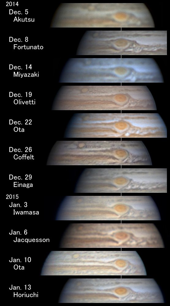 まいました。最も衰えたのは29日で、大赤斑南縁のアーチがほぼ消失し、前方に伸びるス