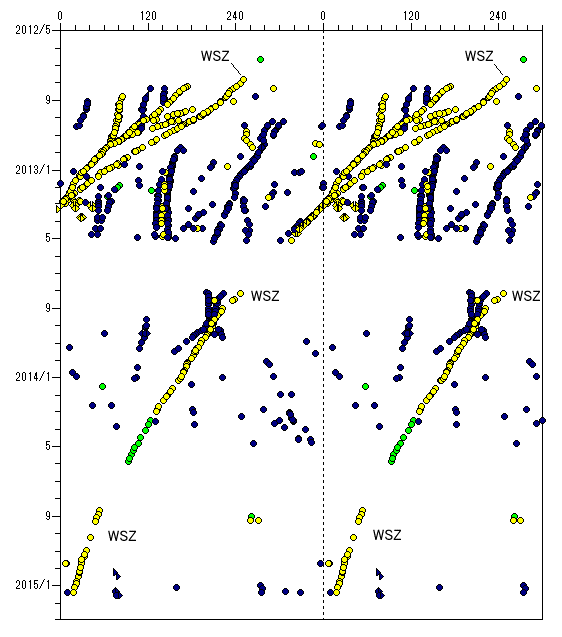 WSZのドリフトは、2012年の北半球の大変動の際に急激に加速して1日当たり-1°に達しま