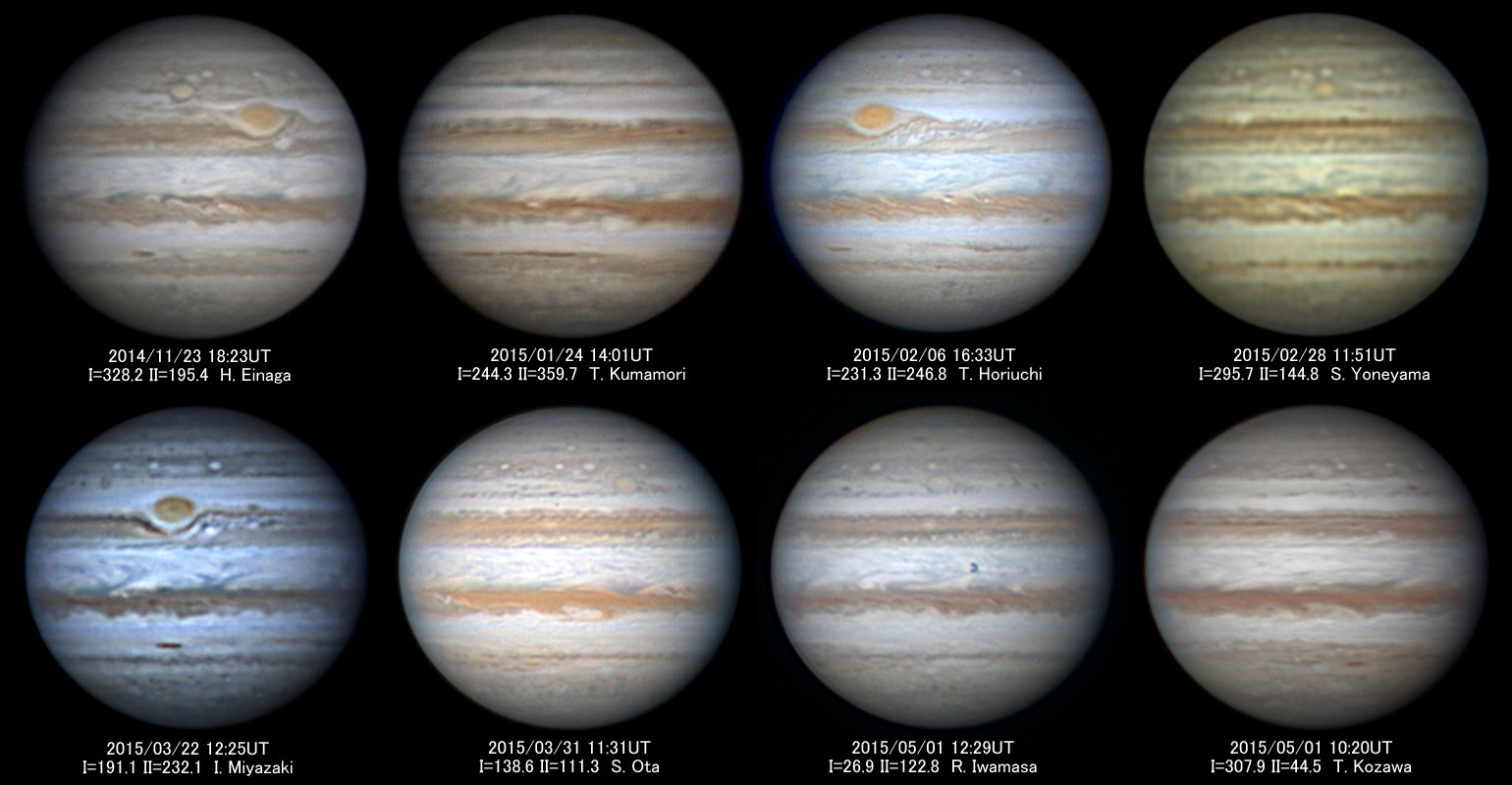 図1は2014-15シーズンの代表的な木星面です。今シーズン最も注目されたのは、大赤斑