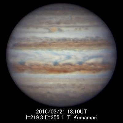 大赤斑は相変わらず赤みが強く、大変目立つ存在です。2月はII=240°でほとんど動きま
