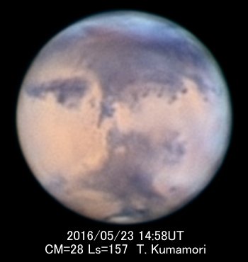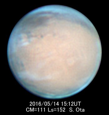 なっています。一方、火星のディスク周辺部には霧のような雲がたくさん見られるように