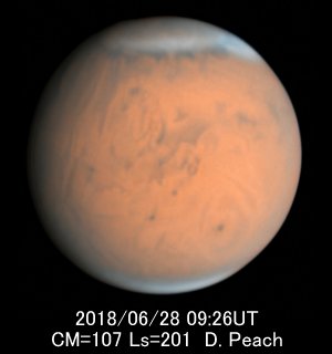 火星火星は最接近を過ぎました。 大接近らしく大きな視直径の火星を見るのは久しぶりのことでした。 しかし、天文ファンの期待をよそに大規模なダストストームが発生し、一般の人が注目するころには眼視で見ると、火星は赤く模様のない球になってしまいました。