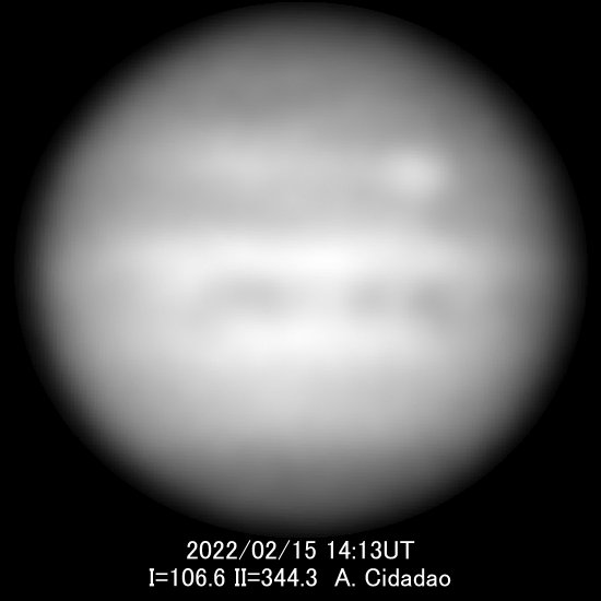 木星近年は天体の自動導入と赤外フィルターを組み合わせることで、日中でも木星の観測が可能となっています。 今年は合からわずか半月前の2月20日過ぎまで画像の報告があり、木星面の状況をおおまかながら、つかむことができています。