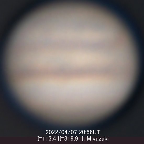 木星2022-23シーズン最初の観測は、3月31日のクライド・フォスター氏(南アフリカ)でした。 国内では4月3日の宮崎勲氏(沖縄県)が最初です。 まだ観測はわずかで、木星面全周をカバーできていません。