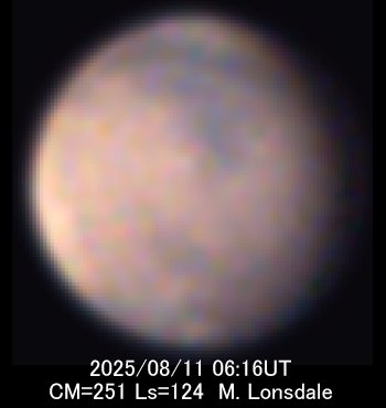 8月11日にSyrtis Major南西部にダストが拡がり、付近の模様が見えにくくなりました。 また、8月17日にはPropontis(180w, +45)とNPCの間に弱いダストストームが発生しています。