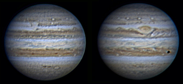 表面模様を観測するとなると、望遠鏡の倍率を高くすることが必要になります。縞模様だけなら100倍でも大丈夫ですが、大赤斑などの模様を見るためには150倍以上の倍率を必要とします。できれば200倍は欲しいものです。しかし、口径が小さいと光量が不足して、暗くて何を見ているか分からなくなるので、口径に応じた倍率を選びましょう。アイピースによっても見え方が大きく変わります。