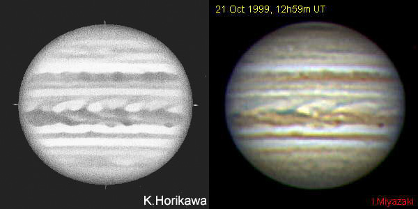 1999年10月21日 12時59分(UT) 体系I:22.9 体系II:188.2 スケッチ/堀川 邦昭(横浜市、16cm反射 200倍) CCD画像/宮崎 勲(沖縄県、40cm反射 Lynxx-PC)