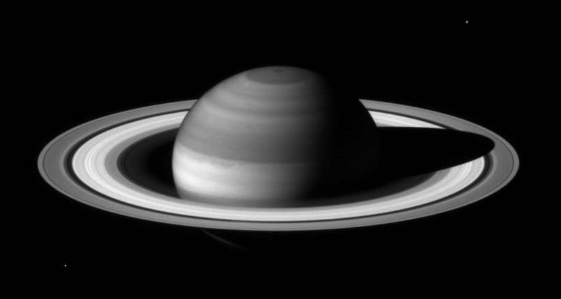画像1 カッシーニによる土星 2004年2月16日のメタンバンドによる撮影。 画像提供(NASA/JPL) (拡大) |