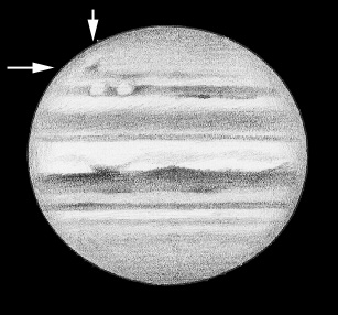 さて、当日の1994年7月17日、C核が衝突する時間に大沢氏は私の主力の30cm反射で。私は、地上においた移動型の30cm反射で眼をこらしていた。しかし何ごとも感じなかった。しばらく休憩の後、19時45分に観測すると、なんとそこにはC核の衝突痕がとらえられた。すぐに大沢氏にも確認して頂いた。図らずも国内最初の衝突痕の記録となった。
