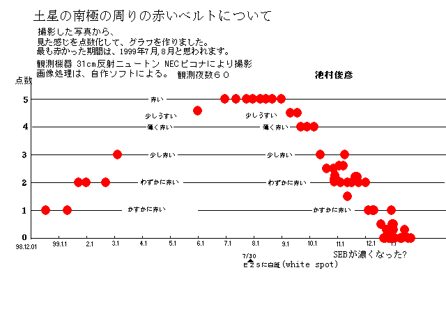 画像1 1999年の土星のSSTBの赤みの変化 (拡大) |