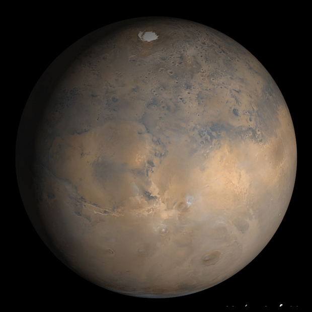 画像2 MGSのとらえた永久南極冠 画像提供/ NASA、撮影/2002年1月15-22日(Ls=309) (拡大) |