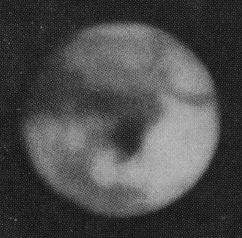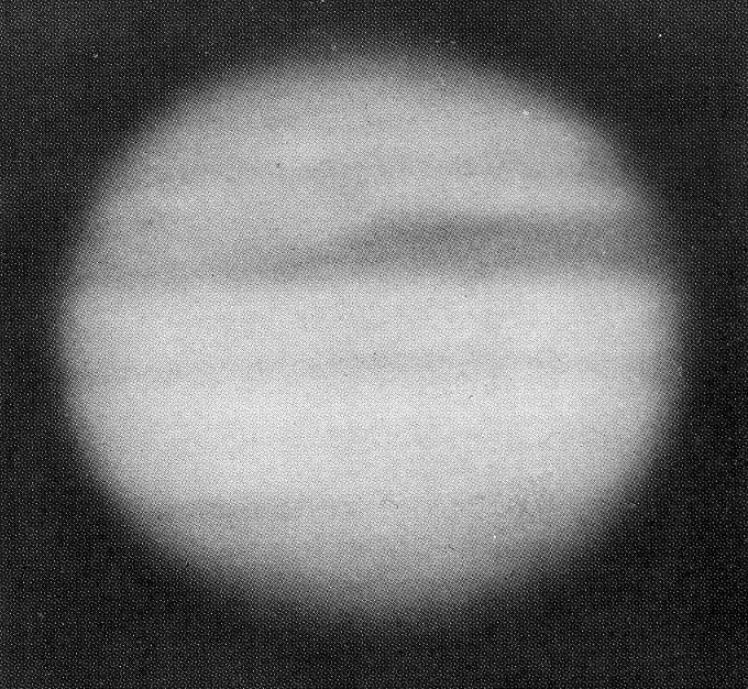 写真をひとつひとつ追って行くと、近年ではちょっと見ることのできない惑星面に遭遇して驚かされます。まず、図1を見てください。これは1904年の木星ですが、画像の下半分に模様がありません。最初に見た時はSEBが淡化した木星が南北逆さまになっているのかと思いましたが、実はそうではなく、NEBの消失した木星面なのです。近年のNEBは常に濃く安定したベルトですので、完全に消失するとは想像もつきません。