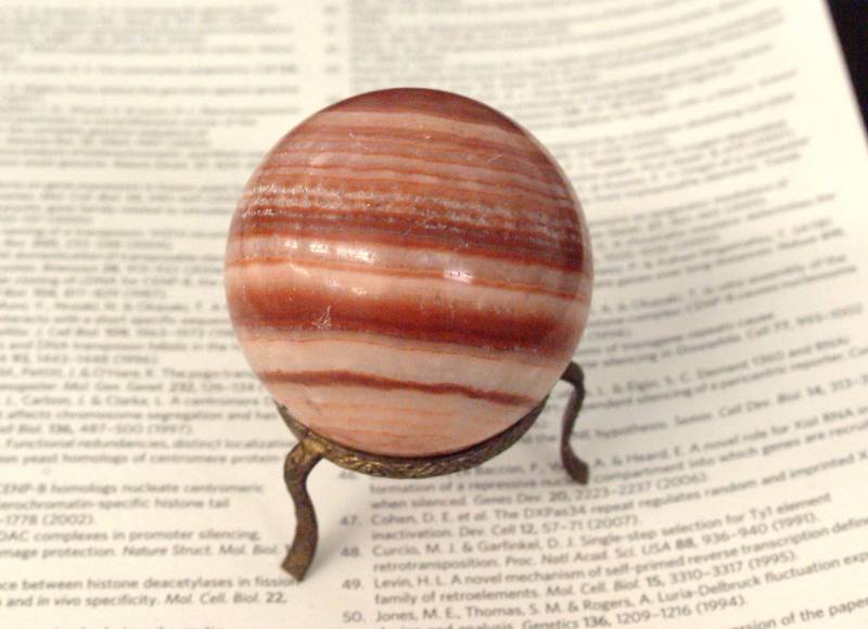 会議が始まる直前に港近くの鉱物店(土産もの店)で見つけたのがこの石です。色といい、縞模様の配置といい、まさに木星が石になったようです(大赤斑があれば完璧なのですが)。確か38ドルだったから、当時の貨幣価値で4000円くらいのものでしょう。会議でこの石の出番はありませんでしたが、懇親会(飲み会)では何人かの学者に自慢しました。会議に出席していた人々のうち大御所の多くは引退してしまいましたし、当時大学院生だった人々が日本でもアメリカでも木星界の中枢にいます。16年という年月はそういうものなのでしょう。