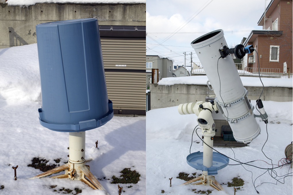 か)。シートだけでは心配だったため、大きなポリバケツを赤道儀にかぶせて保