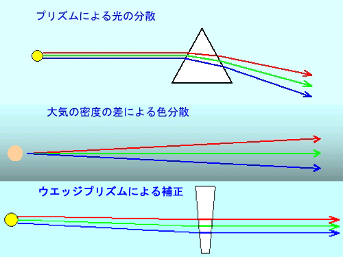 色分散の度合いは惑星の高度により変化するため、一定の角度のウェッジプリズ