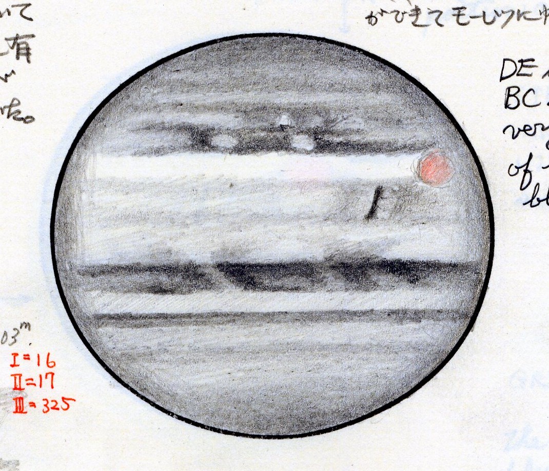 必死になって毎晩、攪乱の見える時間をねらって観測に行きました。木星は自転