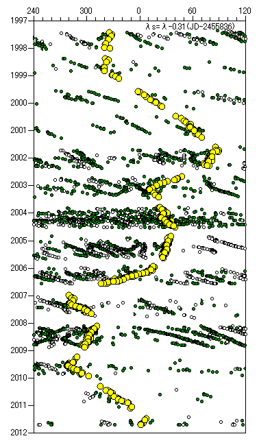 トで、体系IIに対して1日当たり-0.3°前進する特殊経度でプロットしてありま