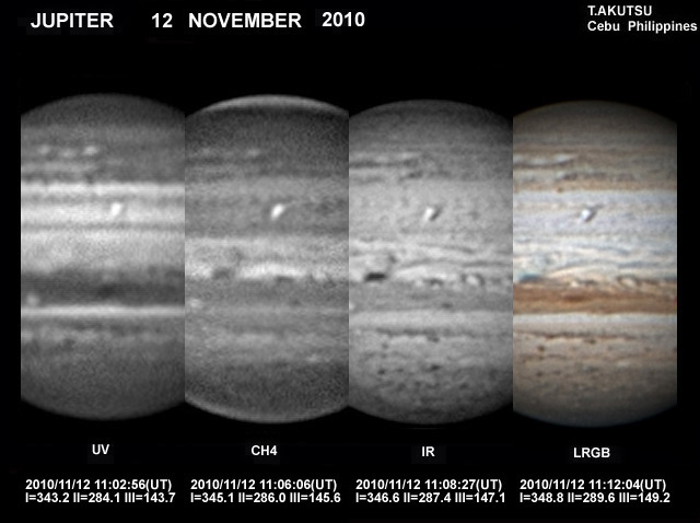 が、木星をメインとして、CH4、UV、IR、Bのフィルターワークによる画像とカラ