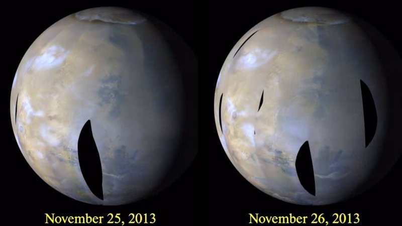 また、山にかかる雲の様子から、気流の流れを推測することも可能です。火星年での一年