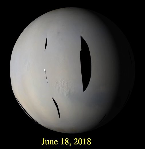 2018年には、久しぶりの大規模ダストストームが発生し、火星の観測者を大いに楽しませてくれました。 その反面、火星はただのオレンジ色の球になってしまい、眼視では模様がほとんど見えなくなりました。 きっと、このオレンジ色の下では、大変なことが起こっているだろうなと、だれしも想像していました。