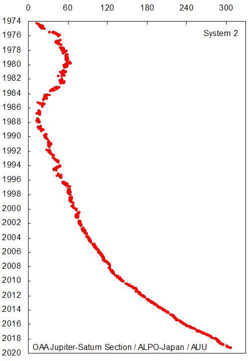 | 月惑星研究会、OAA木土星課、大学天文連盟の観測データから作成。 |