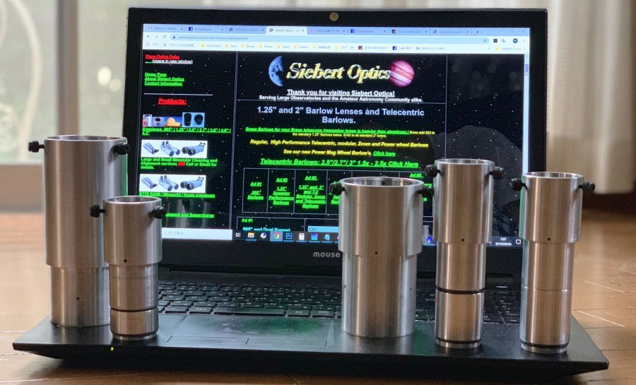 今回ご紹介するのは、Siebert Optics(https://www.siebertoptics.com/)です。 Harry Siebertさんオリジナルの光学製品を販売していますが、注目すべきはバーローレンズの品揃えです。 たぶん、世界一ではないでしょうか。 拡大率だけで1.37x、1.5x、1.6x、1.75x、2x・・・4.0xと、10パターン以上あります。 バレルサイズも1.25”、2”が用意されているので、あまりの品種の多さに、選定時は悩んでしまうことでしょう。