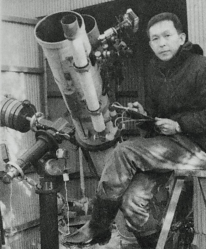 大澤 俊彦(おおさわ としひこ 1935〜2001)。 日本の木星観測では村山定男、薦田一吉と共にパイオニア的存在です。 1947年(中学1年の時)に自作8cmニュートン経緯台で惑星観測を開始し、その後15cmニュートン経緯台を自作、1952年高校生の時に土星の北赤道縞に3個の暗斑を発見、「大澤斑点」として国際的に注目されました。