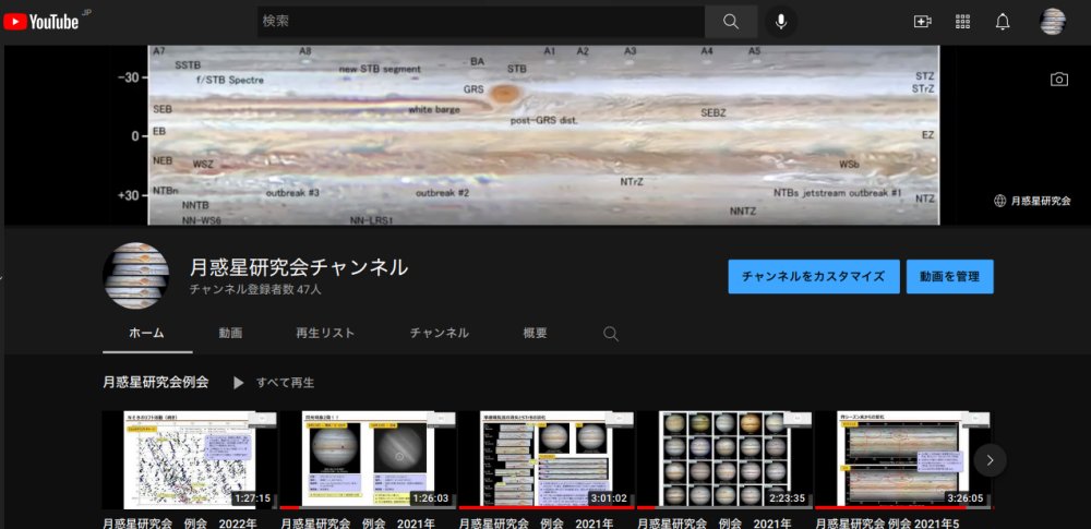 YouTubeの「月惑星研究会チャンネル」には、例会と2022年開催の木星会議のアーカイブがあります。 リアルタイムで参加できなくても都合の良い時間に視聴可能です。 興味はある、ちょっとのぞいてみたい、という場合にもうってつけです。