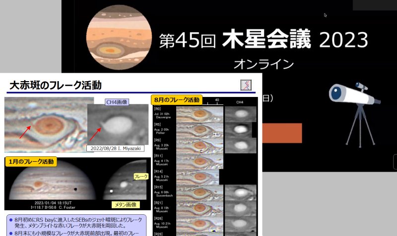 | 筆者による木星面のまとめの資料です。会議の様子は後日、YouTubeで公開される予定です。 |