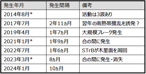 発生間隔は数ヵ月〜3年と、これまでに取り上げた現象に比べると短いのが特徴です。