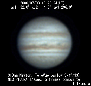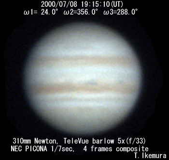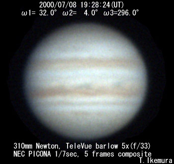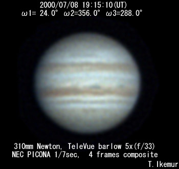 No.3 2000/07/08 18h50m(UT) I= 7.8 II=340.0 150mm Maksutov-Newton, x257 Seeing:3/10 Transp.:4/5