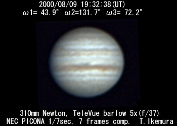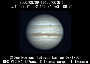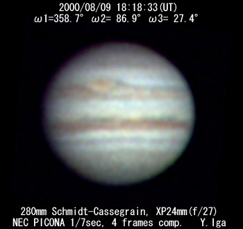 I= 28.3 II=116.2 III= 56.8 280mm Schmidt-Cassegrain, XP24mm(f/27) NEC Picona 1/7sec, 4 frames composite Seeing:5/10 Transp.:2/5