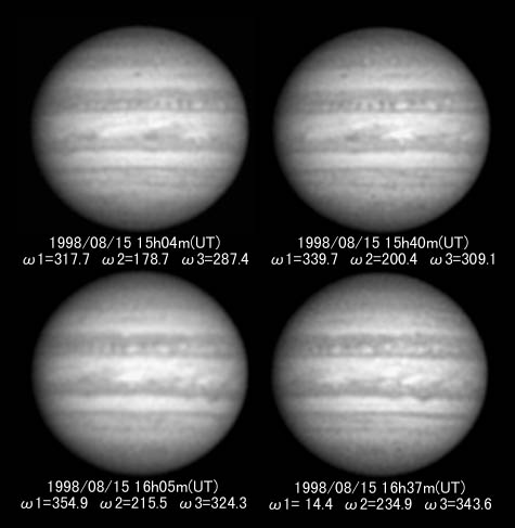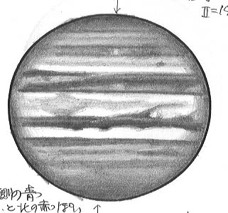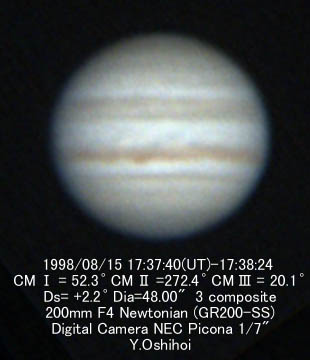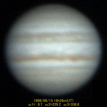 ![]() No.65 1998/08/15 15:40(UT) I=341.1 II=201.8 Seeing:7-5/10 Transp.:4/5 x390 |