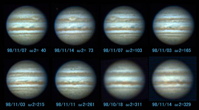10月中旬から11月中旬までの池村氏・伊賀のPICONA画像から、木星の全周をほぼ45度に分割した8枚から構成しました。