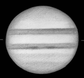 ![]() NO. 4 1999/05/05 20h00m(UT) I=235.7 II=248.5 III= 66.2 280mm Schmidt-Cassegrain, x180 Seeing:2-3/10 Transp.:5/5 |