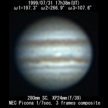 ![]() No. 3 1999/07/31 18h03m(UT) I=212.6 II=282.1 III=122.9