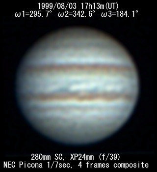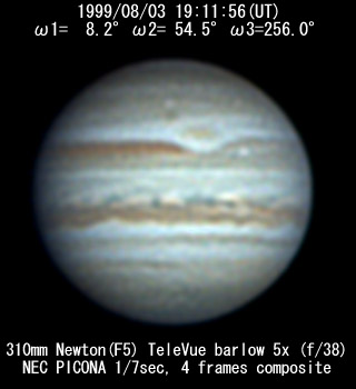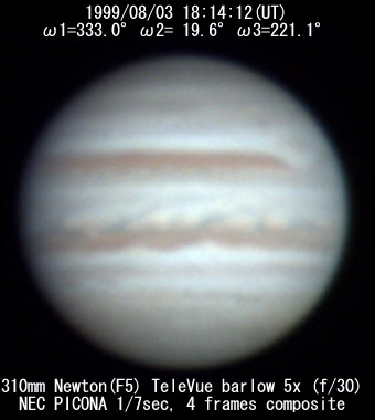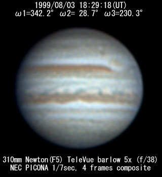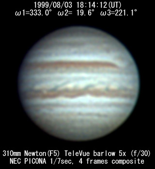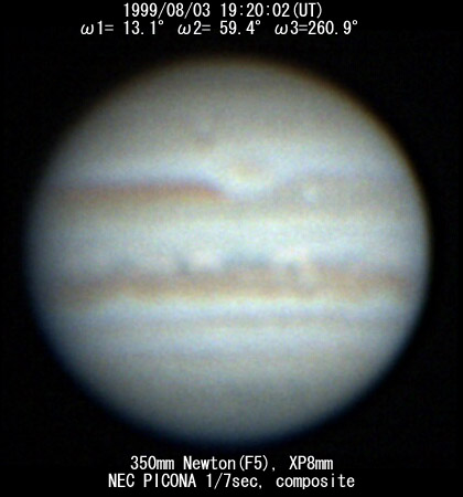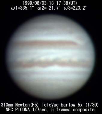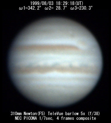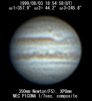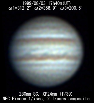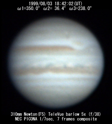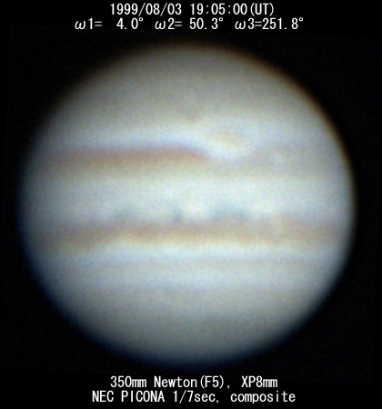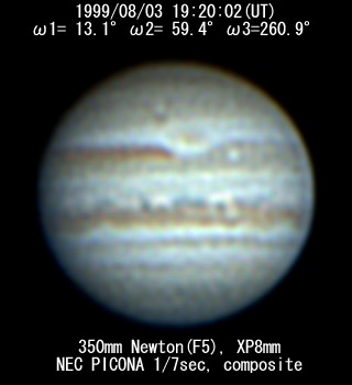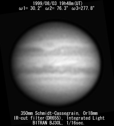 No. 2 1999/08/03 19h48m(UT) I= 30.2 II= 76.3 III=277.8 350mm Schmidt-Cassegrain BITRAN BJ-30L, DR655 filter, 1/16sec