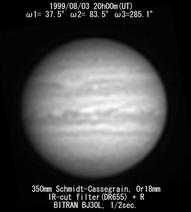 No. 3 1999/08/03 20h00m(UT) I= 37.5 II= 83.5 III=285.1 350mm Schmidt-Cassegrain BITRAN BJ-30L, DR655 filter + R, 1/2sec