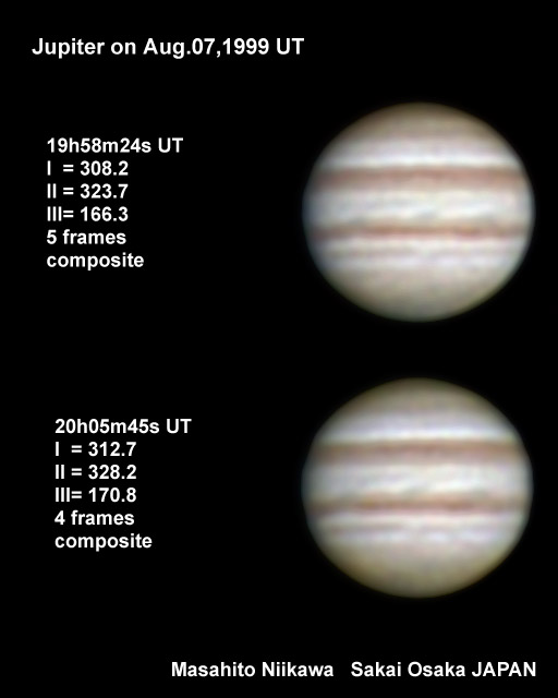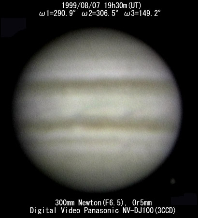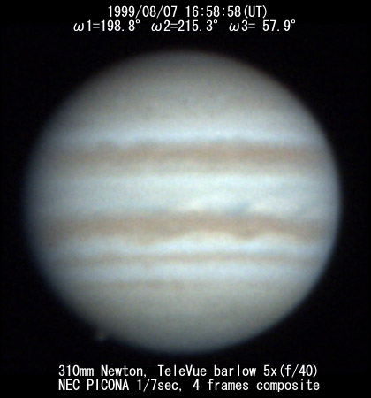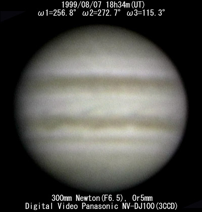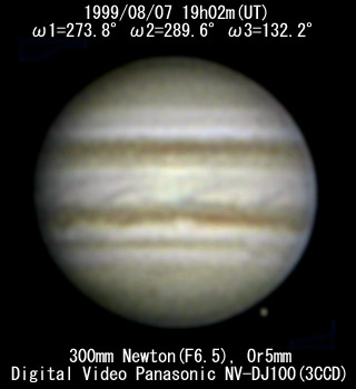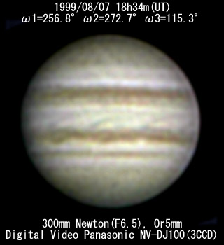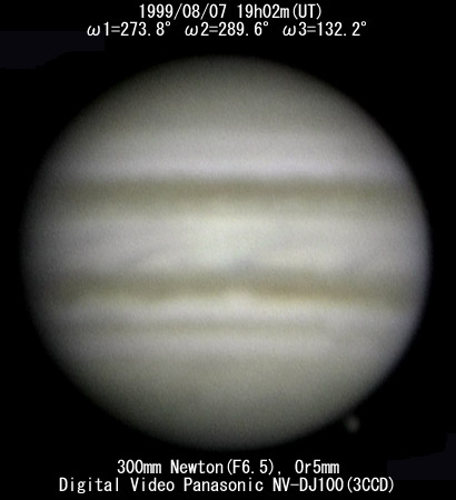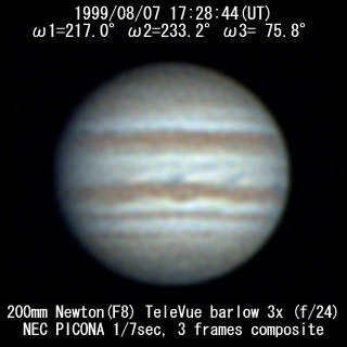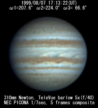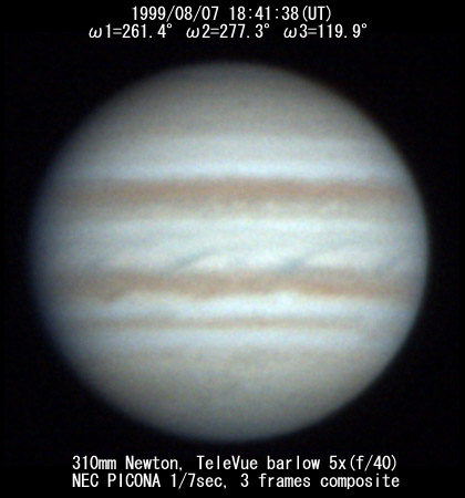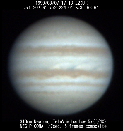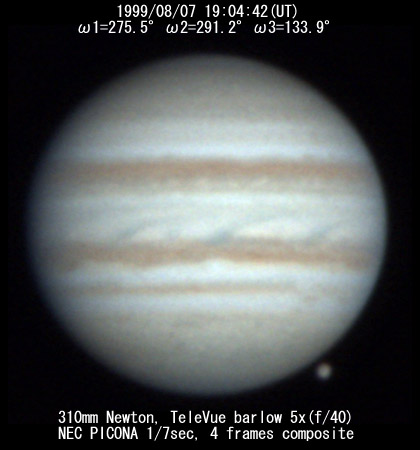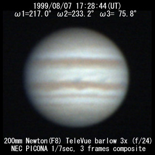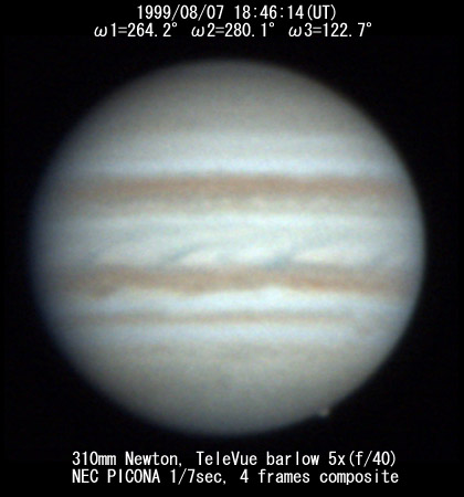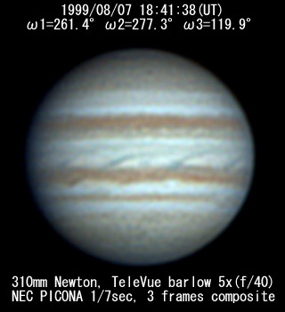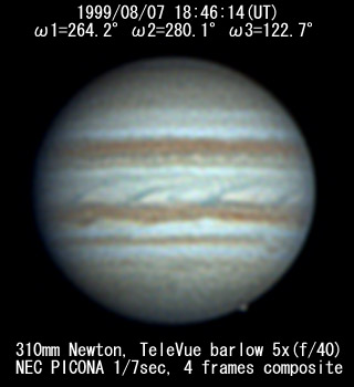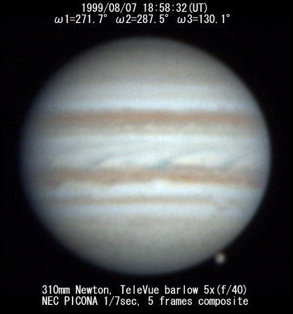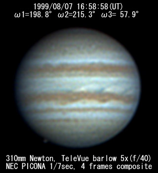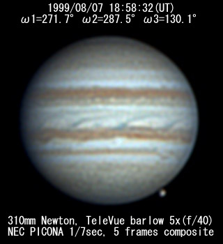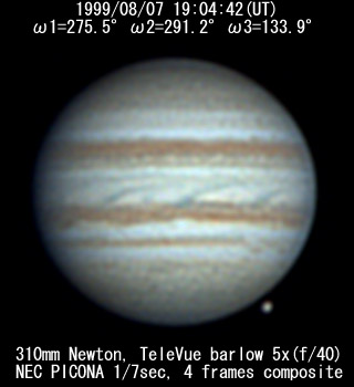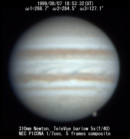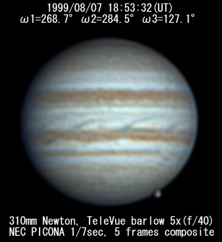 ![]() No. 7 1999/08/07 18h34m(UT) I=256.8 II=272.7 III=115.3 13 frames composite |