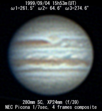 I=242.0 II= 45.2 III=255.3 280mm Schmidt-Cassegrain, XP24mm(f/39) NEC Picona 1/7sec, 4 frames composite Seeing:5/10 Transp.:4/5