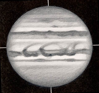 SEBZは濃い南半分と、淡化している北半分が見られ、SEBsを流れる暗斑がProjectionのように見えています。