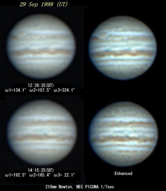 No. 21 1999/09/29 14h15m(UT) I=192.5 II=165.4 III= 22.1 210mm Newton NEC Picona 1/7sec 3 frames composite