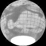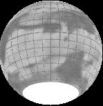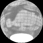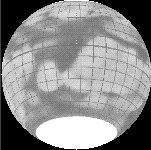 使用した展開図は、以下の文献に掲載されたものを使用しました。最近の火星面の模様と少し変化しているようです。原図には経緯度線が描かれていますが、逆に火星図と照合する際には便利なような感じです。また、原図はメルカトル図法で描かれていますので、63度より高緯度の地形は真っ白になってしまいました(白い部分は極冠ではありません)。