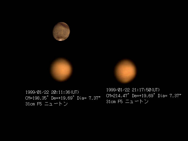 Toshihiko Ikemura (310mm Newtonian, Digital still Camera NEC PICONA)![]() 1999/01/22 20:11:36(UT) CM=198.35 1999/01/22 21:17:50(UT) CM=214.47 De=+19.69゜Dia= 7.37" 31cm F5 ニュートン テレビュー5Xバーローレンズ 2゜プリズム 合成 F52 NEC PICONA 1/7秒 2枚コンポジット |