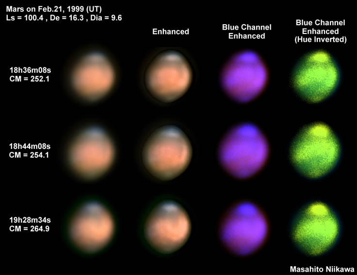 19日の画像と違ってSYRTIS MAJOR(シルチス)が見えるようになっています。かなり短期間で雲の変化が起こっているようです。ずいぶんほっそりとしたSYRTISになっていますが,南北に伸びた雲か砂嵐が一部を隠しているものと思われます。