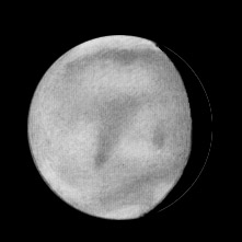 南極地方のフードが捉えられていますが,南極冠かどうかについてはなんとも判断できかねます。わずかに明るくなっているようにも思えますが,判断するには余りに微妙です。安達が眼視で見ていたわけですが,はっきりしませんでした。 今回は久しぶりにElysiumu(エリシウム)が中央付近で観測できましたが,山の頂き近くに雲がかかり,明るくなっている様子が捉えられています。 | ||