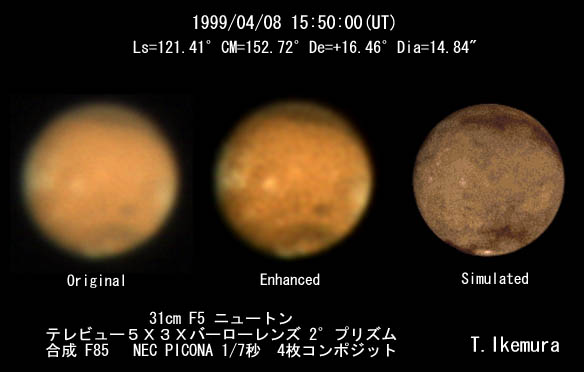 1999年4月に入り,日本からの観測ができる地域はAmazonisuからTharsisへ,そしてさらにTempe方面へと遷り変わってきた。関西支部の面々による火星の観測も非常に活発となり,たくさんの画像が得られている。