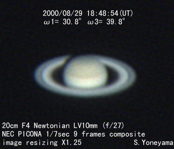 2000/08/29 18:48:54(UT) I= 30.8 III= 39.8 200mm Newtonian(F4) LV10mm(f/27) NEC PICONA, 1/7sec, 9 frames composite